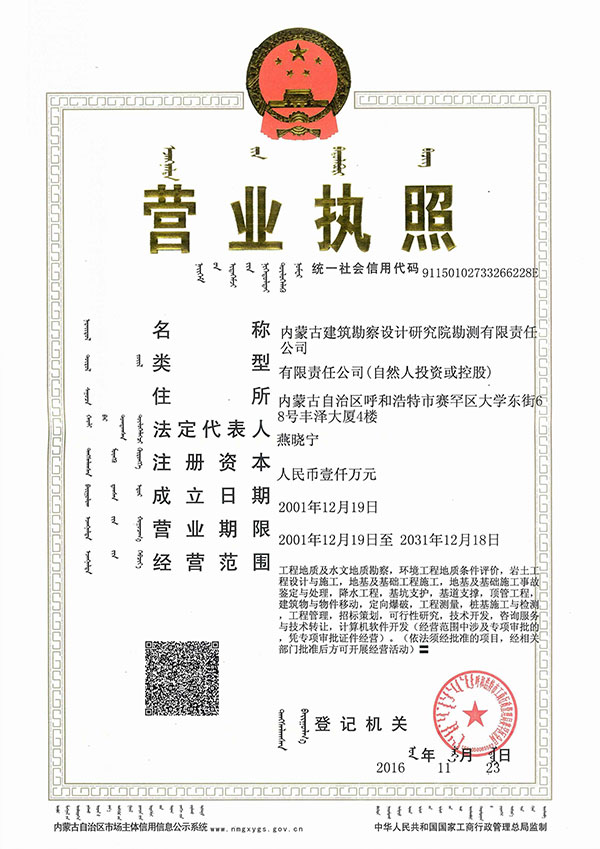 - 內蒙古建筑勘察設計研究院勘測有限責任公司,是全國首家完成 轉企建制的省級建筑勘察設計單位。公司前身為內蒙古建筑勘察 設計研究院勘測分院, 成立于1954年 ,經過六十多年的發展, 現已成為全區技術力量雄厚、專業設置齊全的集巖土工程勘察 、 設計、治理、檢測、監理、咨詢、水文地質勘查、工程測量、科 研為一體的綜合性企業 ... ... [查看詳情]